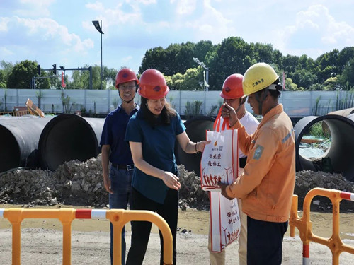 7月21日,市人社局副局長、總工會(huì)副主席施曄新一行,冒著酷暑來到錫澄S1線配套給水管道工程施工現(xiàn)場(chǎng),慰問高溫下堅(jiān)守崗位的一線職工,送上一份清涼,道一聲辛苦。